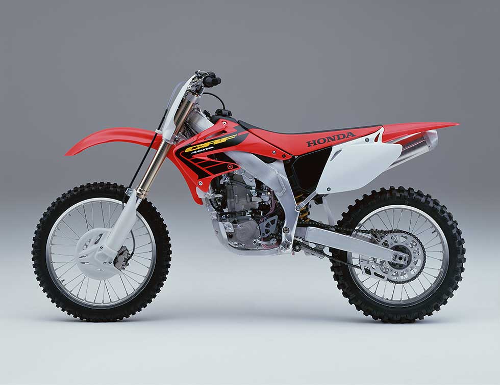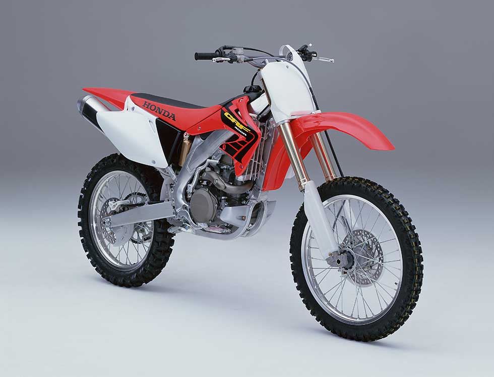 The name CRF signified a new generation of motocross machines. It combined CR, the name long used for Honda’s two-stroke motocrossers, with F, representing four-stroke.