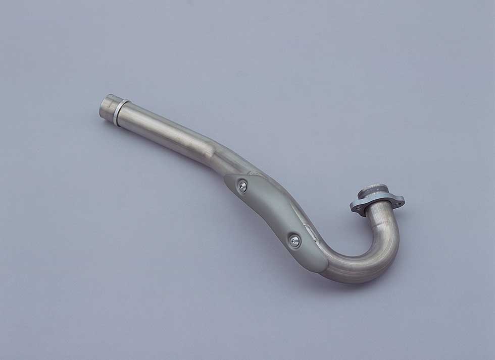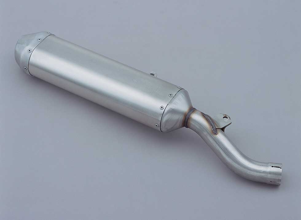 The exhaust system uses a lightweight titanium exhaust pipe, paired with an aluminum silencer designed for easy replacement of the glass wool packing.