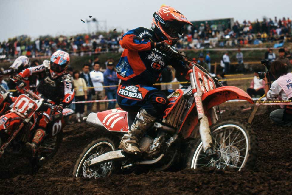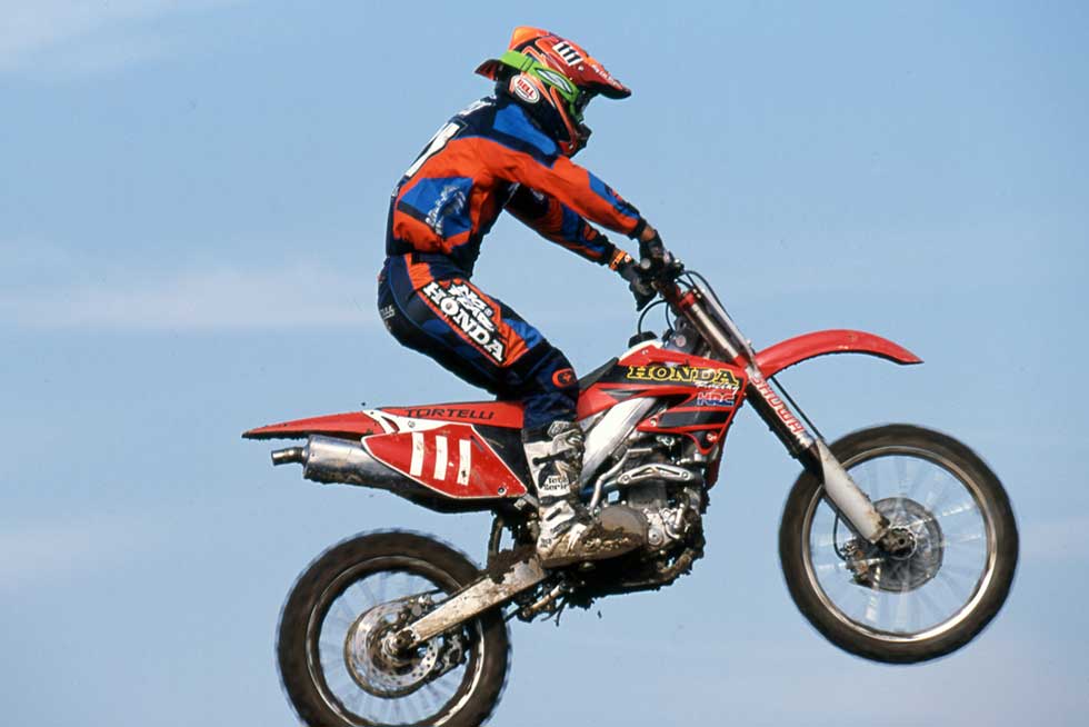 Honda entrusted the machine to Sébastien Tortelli, the French rider who had won the 1998 Motocross World Championship 250cc title. During the 2000 season, Tortelli was already competing successfully in U.S. motocross aboard the CR250R.
