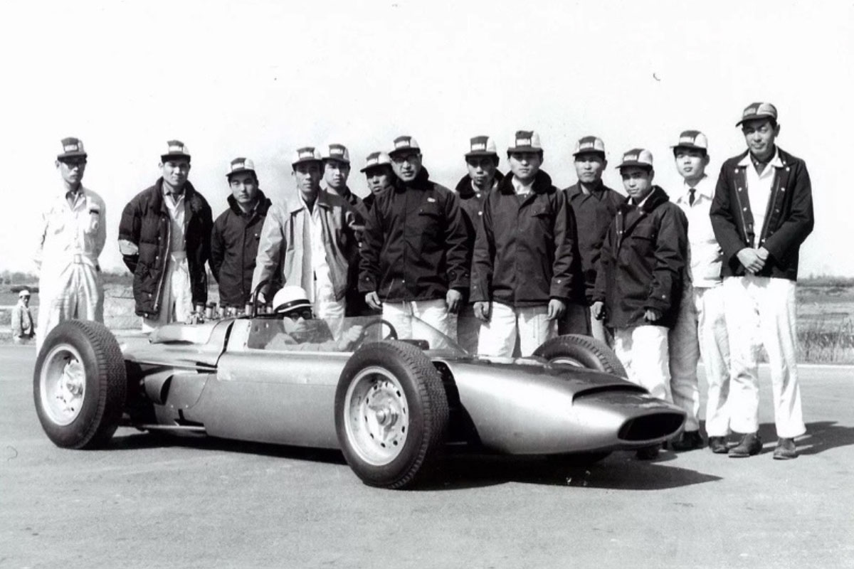 According to Yoshio Nakamura, leader of Honda’s automobile development at the time, technical development for Honda’s first F1 era began in January 1963. Nakamura was an engineer who had worked on jet engine development for military aircraft during World War II. After the war, he wanted to be involved in F1 racing, and joined Honda after working at several automobile manufacturers. He laid the foundation for Honda’s automobile development, served as the F1 team manager, became a board member for Honda’s automobiles, and after retiring, was elected president of the International Federation of Automotive Engineering Societies (FISITA). He was also an essayist known for his elegant writing style and wrote many notable works on Honda and Formula 1. According to his writings, Honda’s automobile design team at the time consisted of around 20 members, who were responsible for developing two production vehicles, multiple prototypes, and Formula 1 activities. The team consisted of six engine specialists, three transmission specialists, five chassis specialists, and seven body design specialists, with component manufacturing and assembly handled by specialized departments.