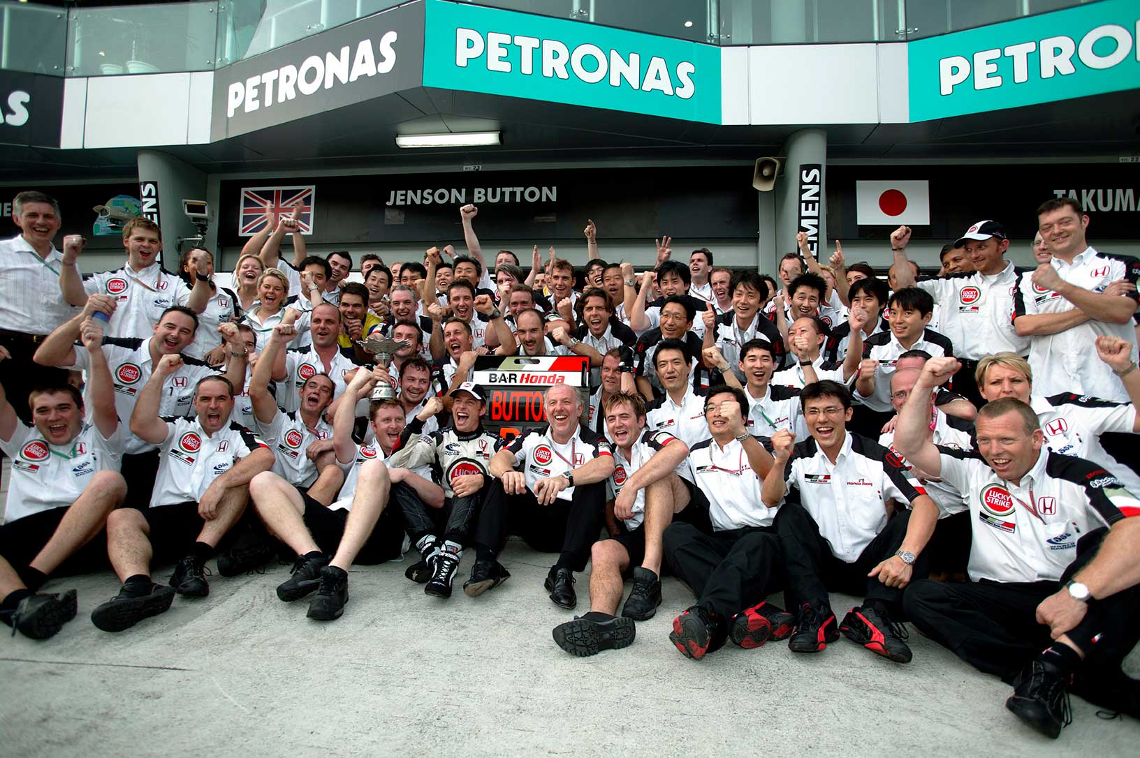 Driving for BAR-Honda, Jenson claimed his first Formula 1 podium finish at the 2004 Malaysian Grand Prix. Starting sixth on the grid, ‘JB’ made progress early in the race, despite contact on the opening lap with Jarno Trulli, and maintained a consistent and quick pace to hold onto third at the chequered flag. This marked the first of 50 podiums that he would achieve during his F1 career.