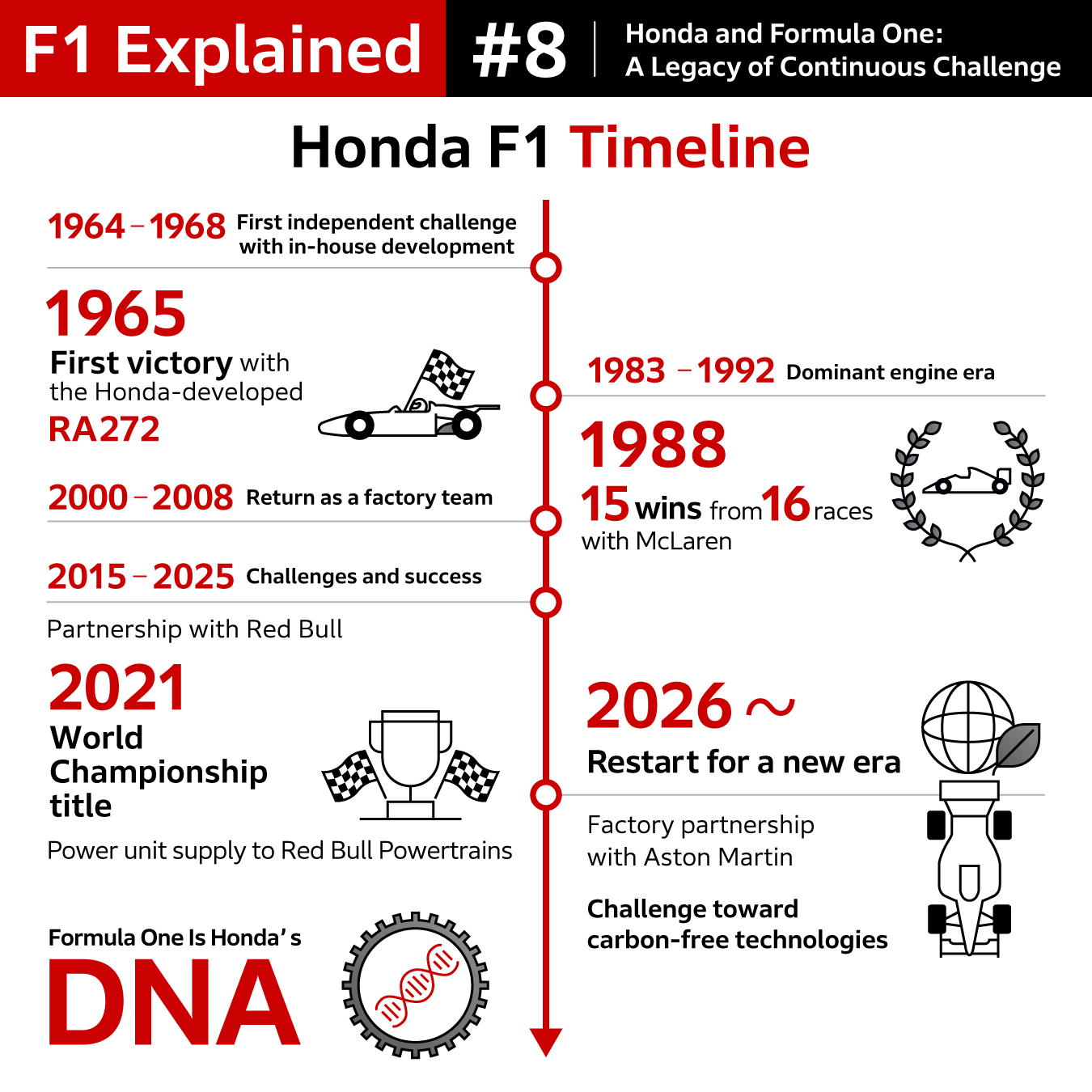 Honda’s Formula 1 history is characterized by repeated cycles of withdrawal and return. At each stage, Honda made rational decisions based on prevailing conditions, while maintaining its underlying passion for the challenge. When the timing was right, that passion found expression once again through a return to Formula 1.