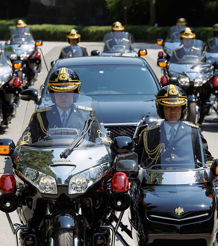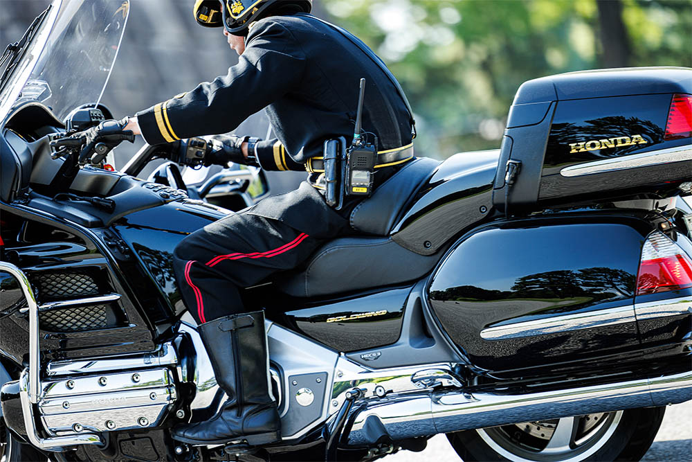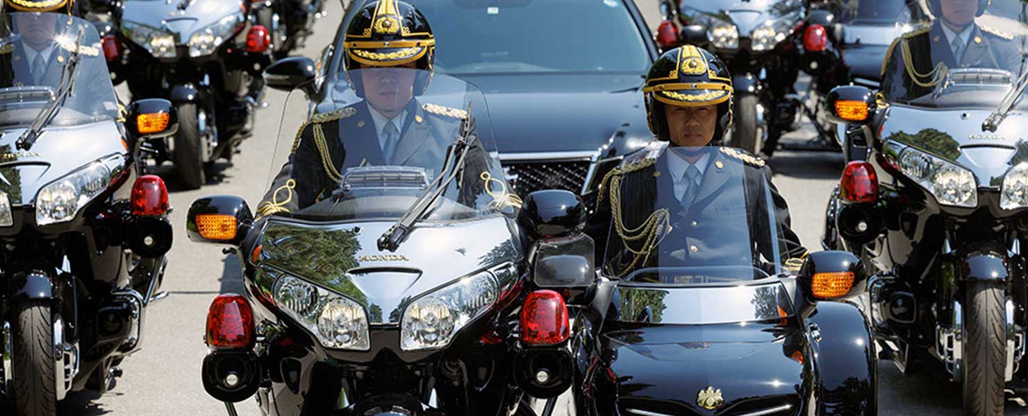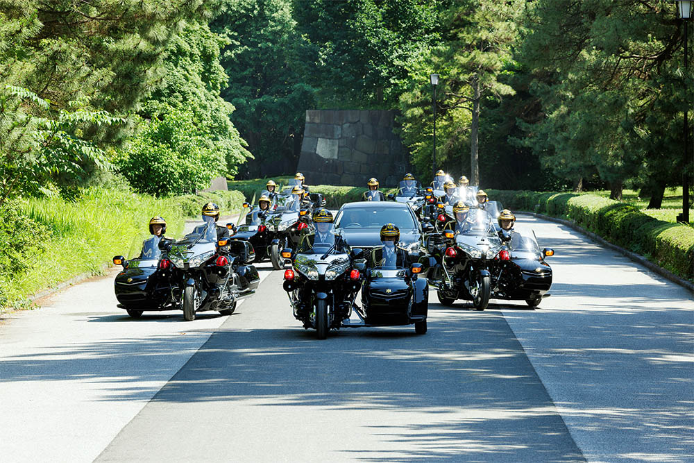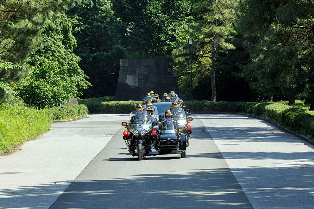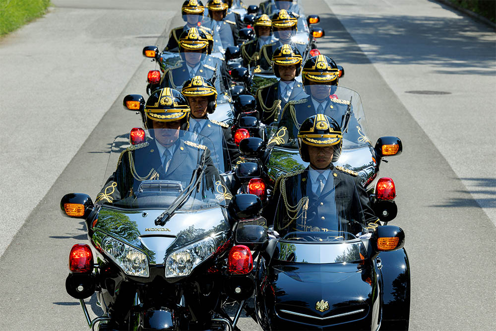 The sidecar motorcycles used for Imperial events and the movement of state guests—and the officers who command them—cut an imposing figure that can appear to add grandeur to solemn, dignified ceremonies. However, the core of their duty is protection: safeguarding those under escort.