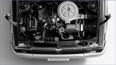 While retaining Honda’s racing spirit, the engine development for the Civic began with the goal of creating a practical liquid-cooled engine that would be a far cry from the DDAC (Duo Dyna Air Cooling) engine developed for the 1300, with its integrated double-walled cooling structure. The biggest challenge was to create an engine that would enable ample cabin space within the car’s limited size. The only way to achieve this was to mount the engine transversely and connect it directly to the transmission. Even with this layout, the initial calculation indicated that the length of the engine had to be reduced to the smallest of measures, otherwise, the steering wheel wouldn’t be able to fully turn.
