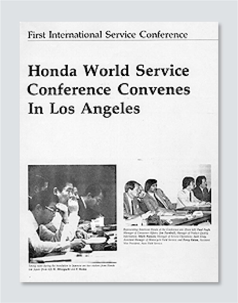 In addition, the first “Global Service Conference” in 1983, covering Japan, North America, Europe, and Asia and Oceania was held at AH. Among the various service activities reported by the participating countries, AH introduced the concept of J.D. Power and Associates’ Customer Satisfaction Index (CSI) and its initiatives.