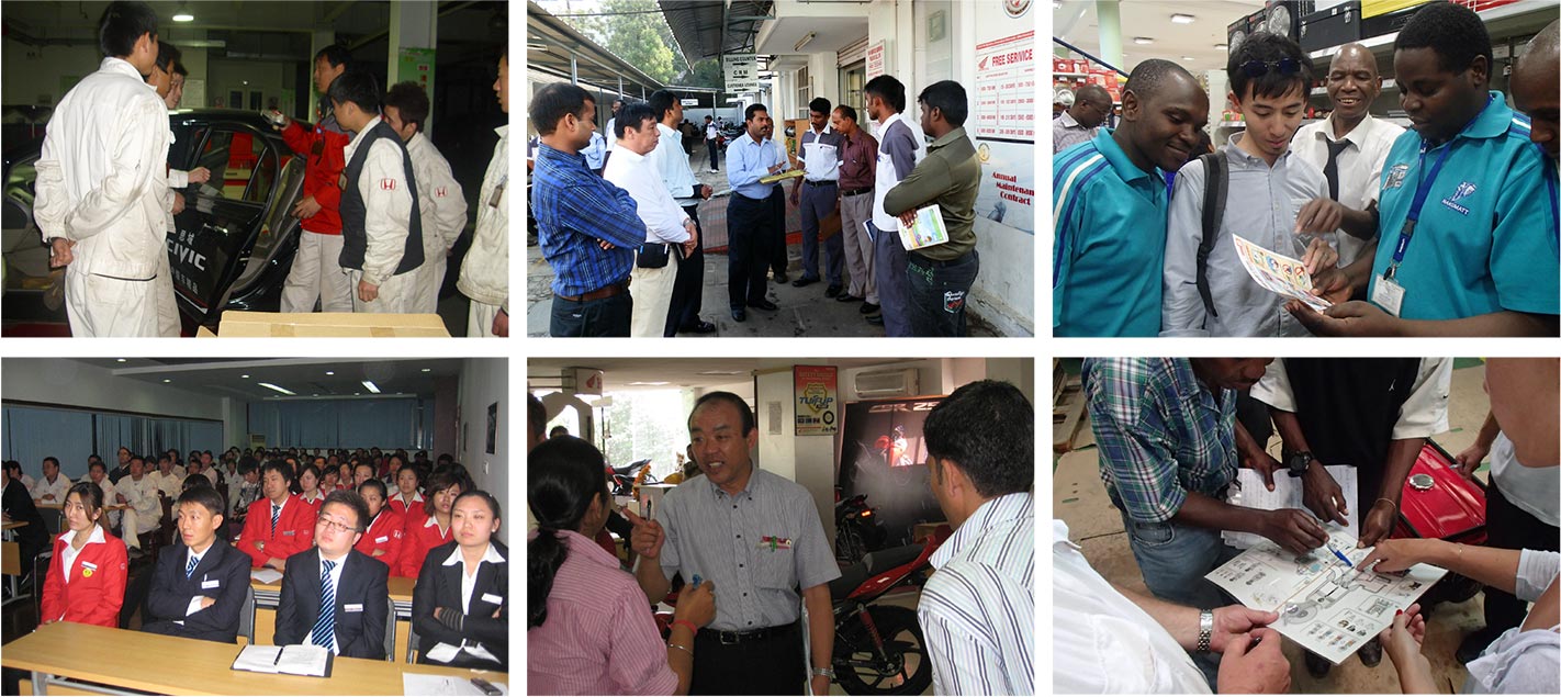 Until 1998, Honda SF and other automobile maintenance experts would travel from Japan to provide service support. However, as local production and sales in China, Asia, and South America expanded from 1999, Honda determined that there were limits to this system, and began to build a new method to efficiently establish local subsidiary service systems and functions in each country.