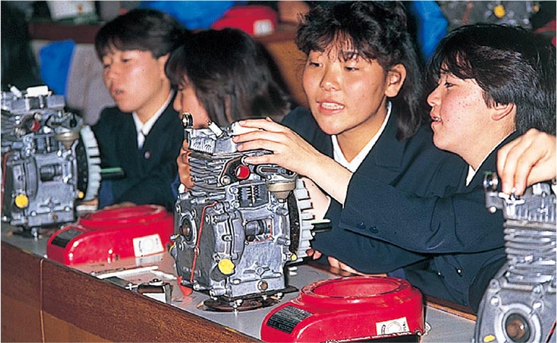 With the conclusion of the Kaminari-zoku(hot rodders) problem, Techniland shifted its axis of business to an automobile amusement park, Motopia, built adjacent to the Suzuka Circuit. A hotel was also built. The hotel’s policy was to respect the autonomy of its guests, based on the idea that it would provide an open atmosphere where guests could spend their time freely, rather than the “full service” of a ryokan in a tourist area. In 1964, the company started an engine school at Tama Tech, giving form to the idea of “seeing, hearing, and trying.” The program, in which participants disassembled and reassembled real engines and operated them, was well received by elementary, junior high, and high school students. The program was soon expanded to the Suzuka Circuit. Eventually, it developed into a school excursion program combining a visit to the Suzuka Factory and an overnight stay at the hotel.