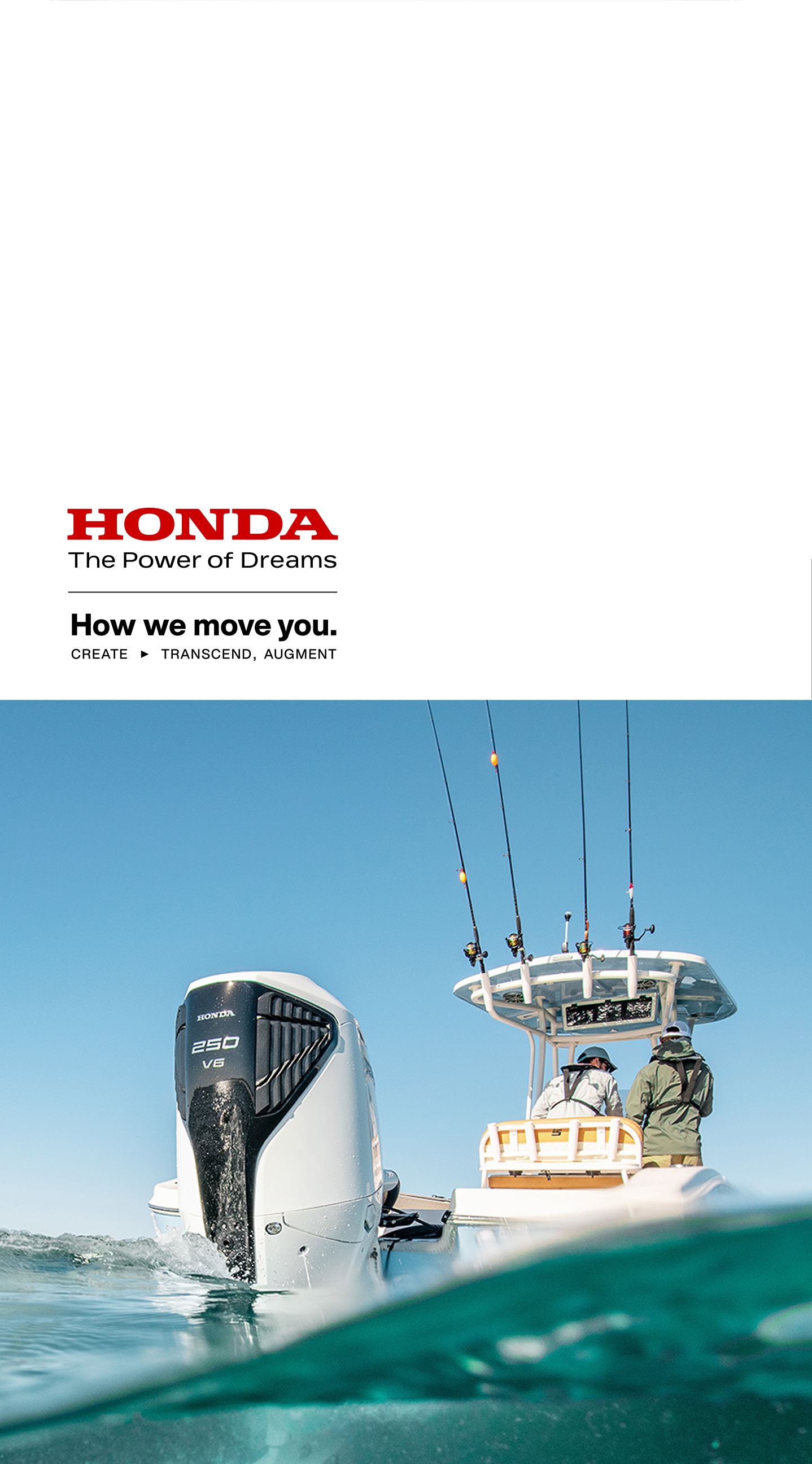 Equipped with a newly developed dedicated V8 engine with displacement of 4,952 cm3 (302 in3), the BF350 is the flagship model of Honda marine outboards, providing powerful propulsion with maximum output of 350 horsepower.