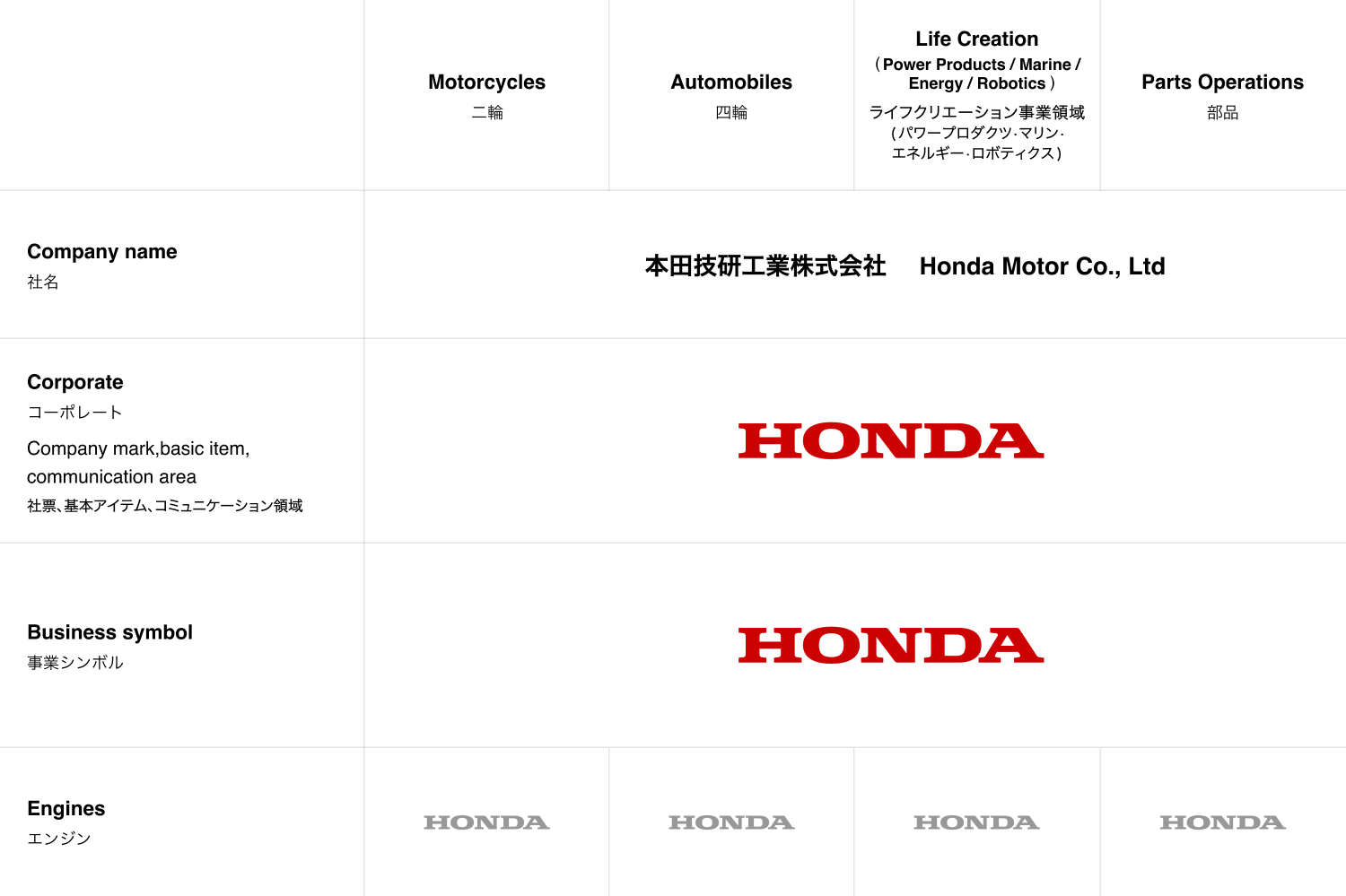 Honda is symbolized by the corporate color, “Honda Red.” The color red represents our passion for our work in mobility and motorsports and tells of our history as a challenger - with the deeper tone chosen to convey our obsession with technology and quality.