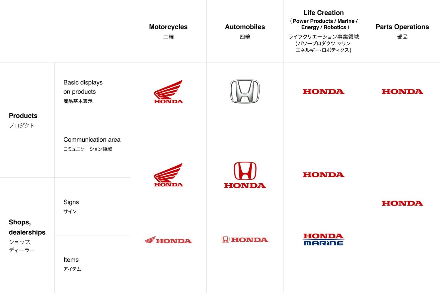 Hondaのコーポレーションシンボルやプロダクトマークは、時代に合わせて変化しています。