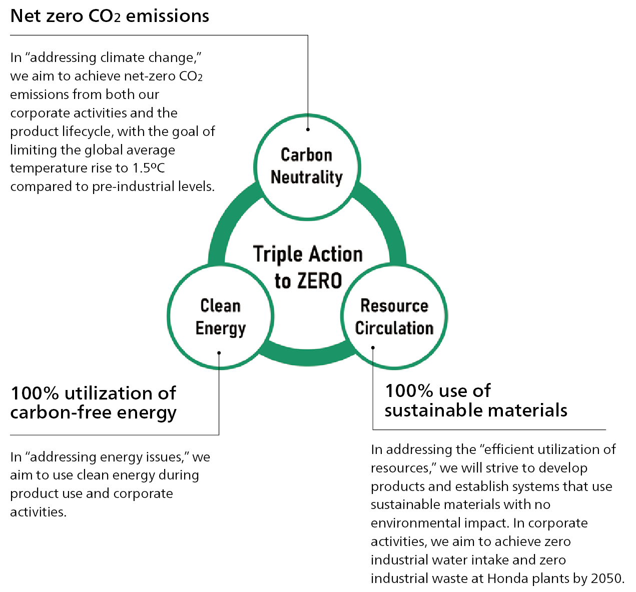 Honda, aiming for sustainable business practices, has set achieving a “Zero Environmental Impact Society”