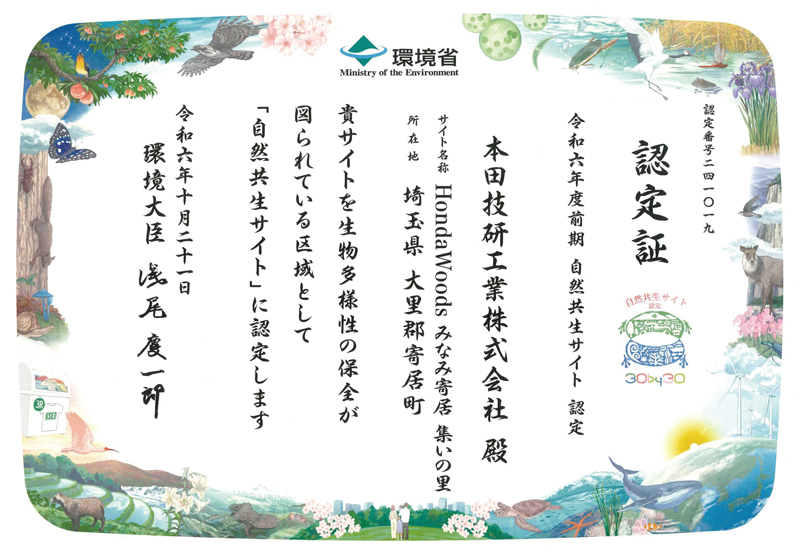 In addition, Saitama Factory Automobile Plant, (Yorii Factory), which has been maintaining a natural environment in consideration of biodiversity and preserving endangered species by installing a biotope on the plant site, was also certified as a Nature Symbiosis Site in September 2024.