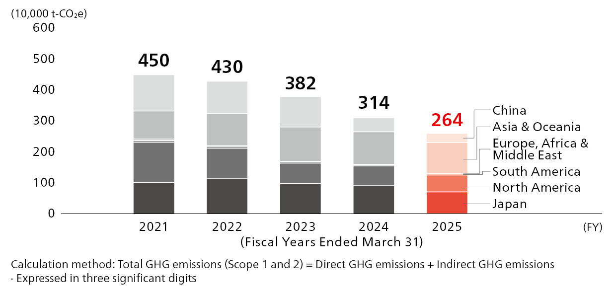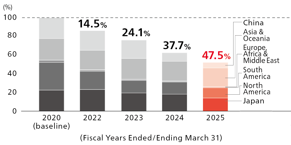 In the fiscal year ended March 31, 2025, the Company achieved a reduction of 47.5% compared to the fiscal year ended March 31, 2020, resulting in CO₂ emissions of 2.64 million t-CO₂e.