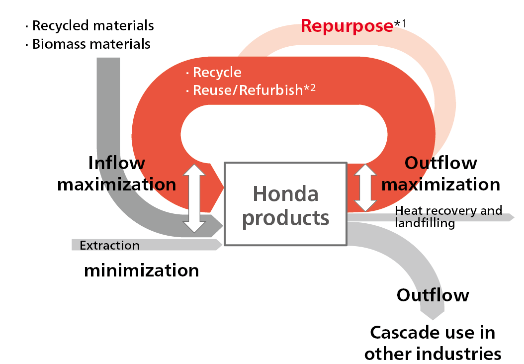 Honda is committed to creating a system premised on recycling, which includes the selection of materials suitable for recycling, easy disassembly and separation design that enables the removal of high-quality scrap, and stable procurement of recycled materials.