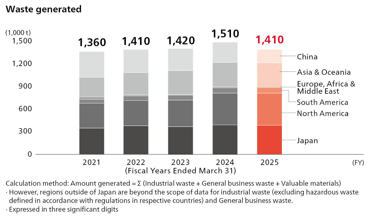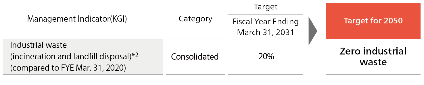 For more fundamental issue solving, as one of the interim targets linked to our ideal state by 2050, we have set new KGI and target to reduce industrial waste (incineration and landfill disposal) by 20% by the Fiscal Year Ending March 31, 2031.