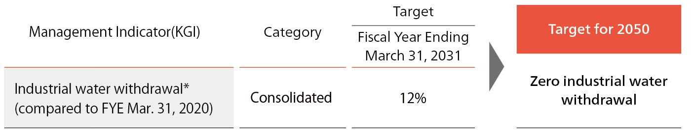For more fundamental issue solving, as one of the interim targets linked to our ideal state by 2050, we have set new KGI and target to reduce industrial water withdrawal by 12% by the Fiscal Year Ending March 31, 2031.