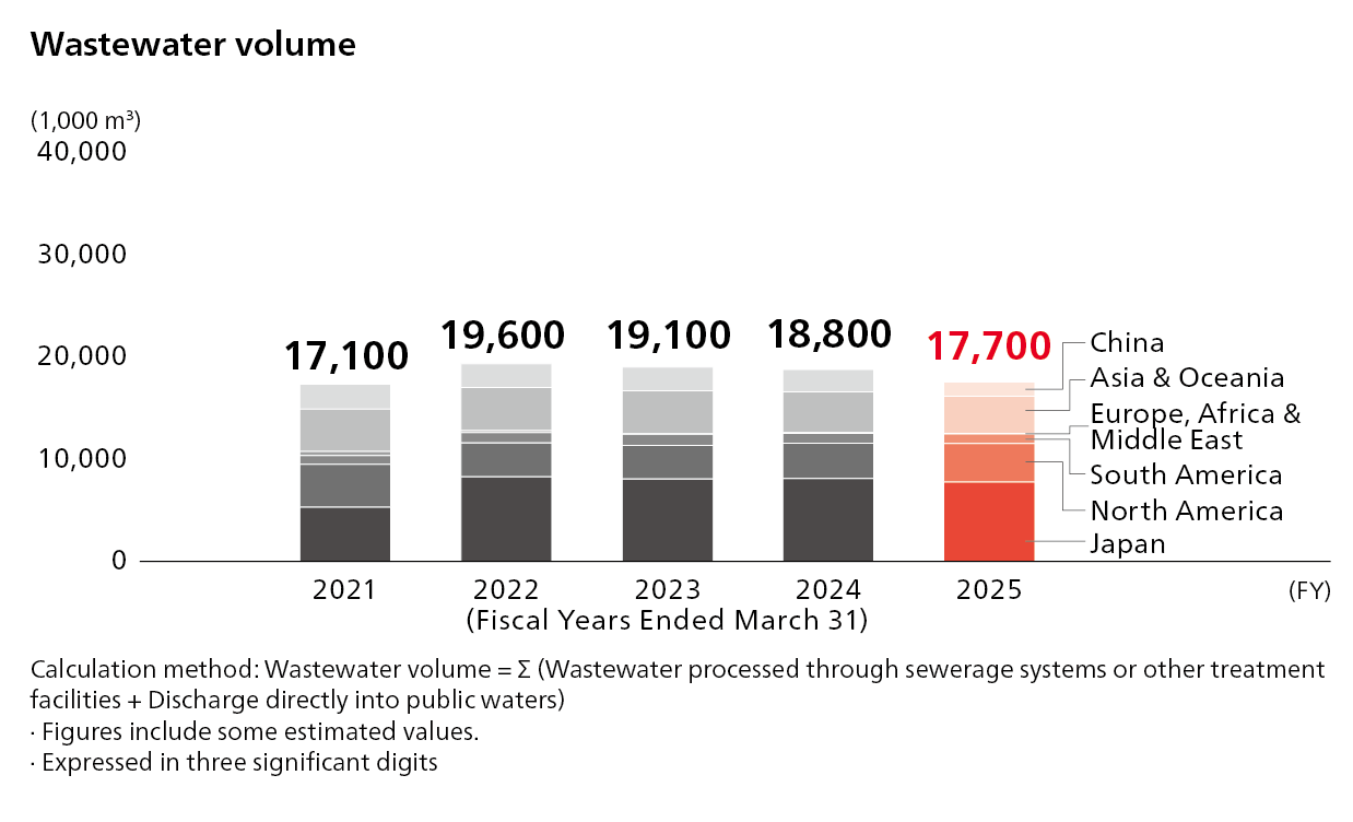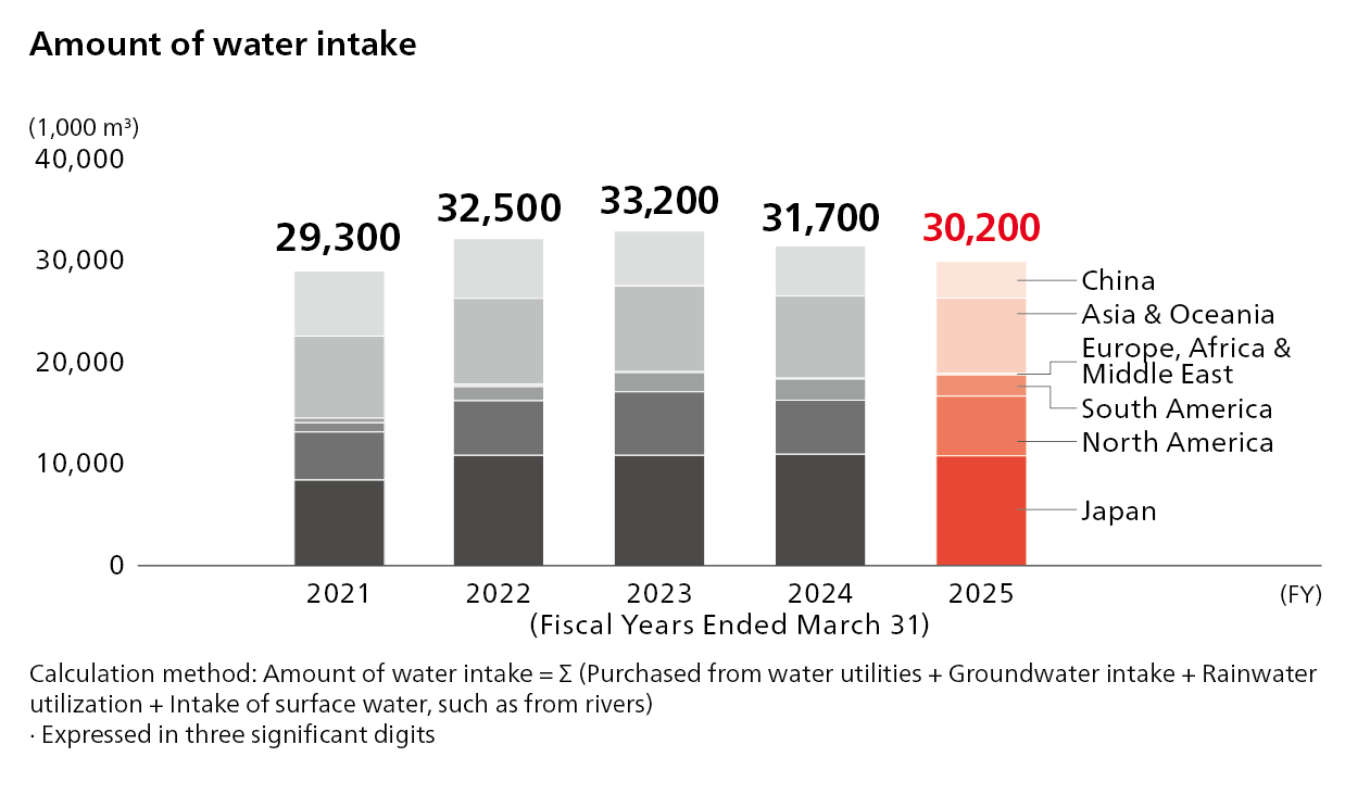 With the aim of achieving zero industrial water withdrawal by 2050, we are also working to minimize water use, such as utilizing recycled water and water conservation, taking into account local conditions.