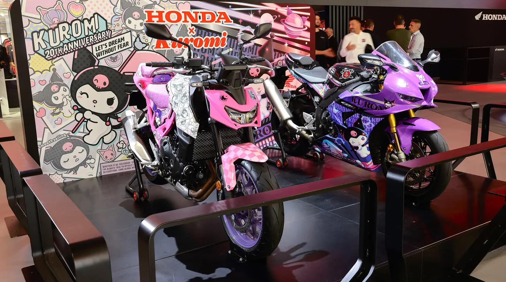 The world's largest two-wheeler exhibition, EICMA in Milan, Italy, welcomed another two guests this year: two special Honda x Kuromi bikes, which appeared at the Honda booth. The large-type bikes — CBR1000RR-R FIREBLADE and the CB750 Hornet — are both extremely popular in Europe, with the former a circuit-ready model and the latter designed for the street. Both bikes received the Kuromi wrapping treatment to make them look fresh and poppin', and get the global audience hyped up for a Kuromified bike of their own.