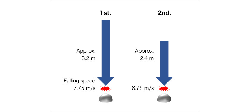 This test checks the impact acceleration transmitted to an accelerometer inside the human head model and checks the impact absorption capacity. A helmet is placed on the human head and dropped from a height equivalent to the speed specified in the standard.