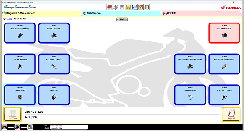 One of its key features, "Quick Doctor" allows for a rapid check of the motorcycle’s condition during maintenance and other routine inspections.