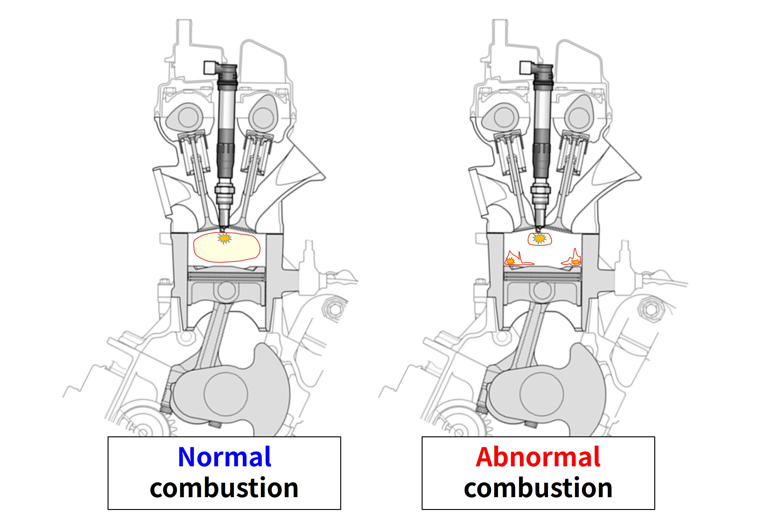 As you can see from the illustrations below, normal combustion starts from the spark of the plug and spreads from there, but in the case of abnormal combustion, combustion spreads from other places, which can also cause damage to the engine because of the rapid rate at which the flame spreads.