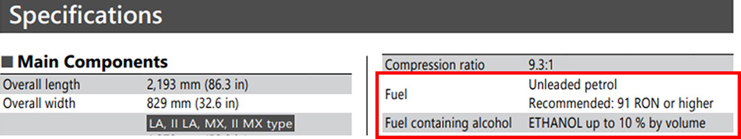 *In Japanese standards, Regular fuels have a RON value of 86 to 95, while High-Octane fuels have a RON of 96 or above.