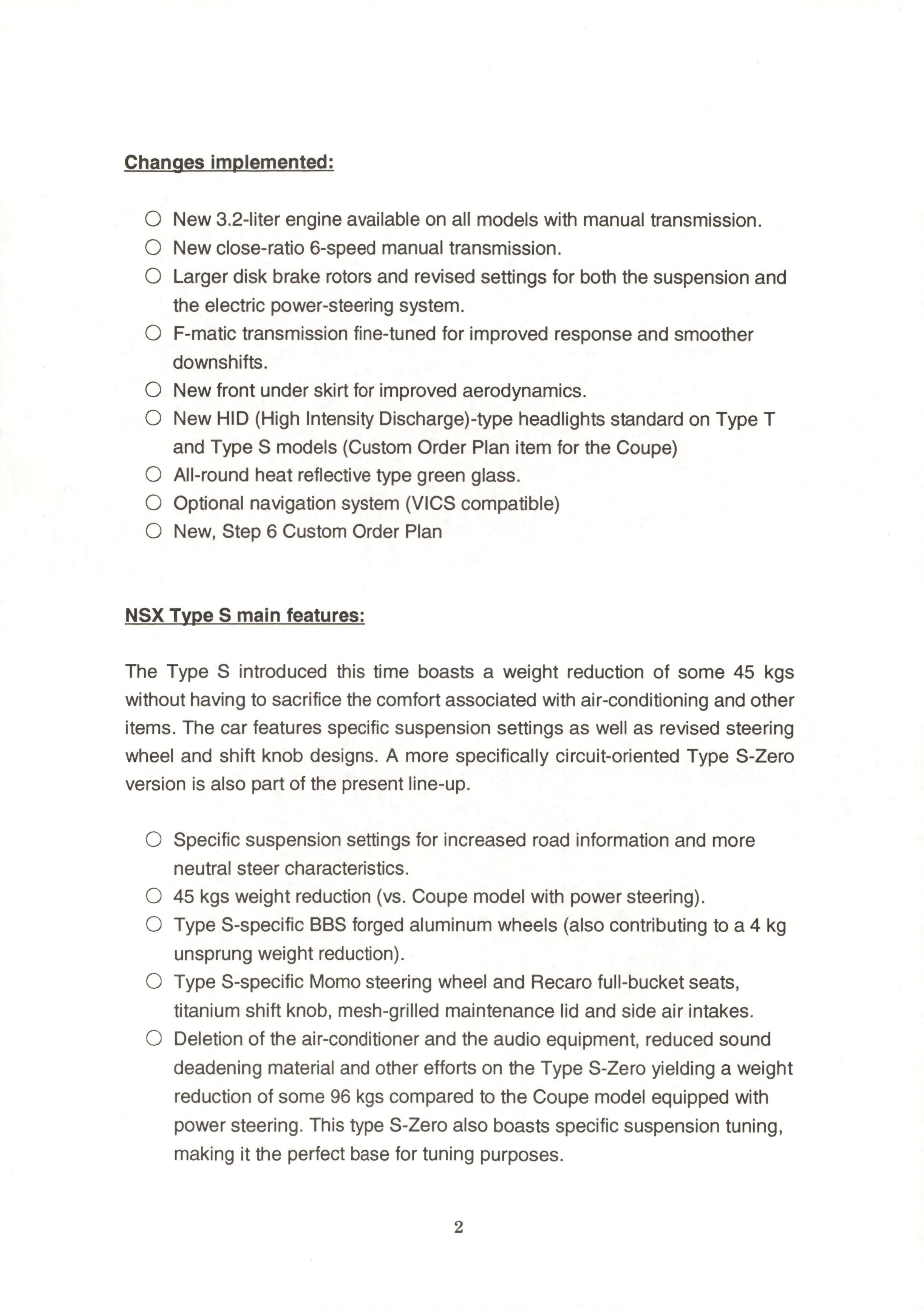 introducti on of a new sporti er "Typ e S" vers ion. This new NSX will be available at