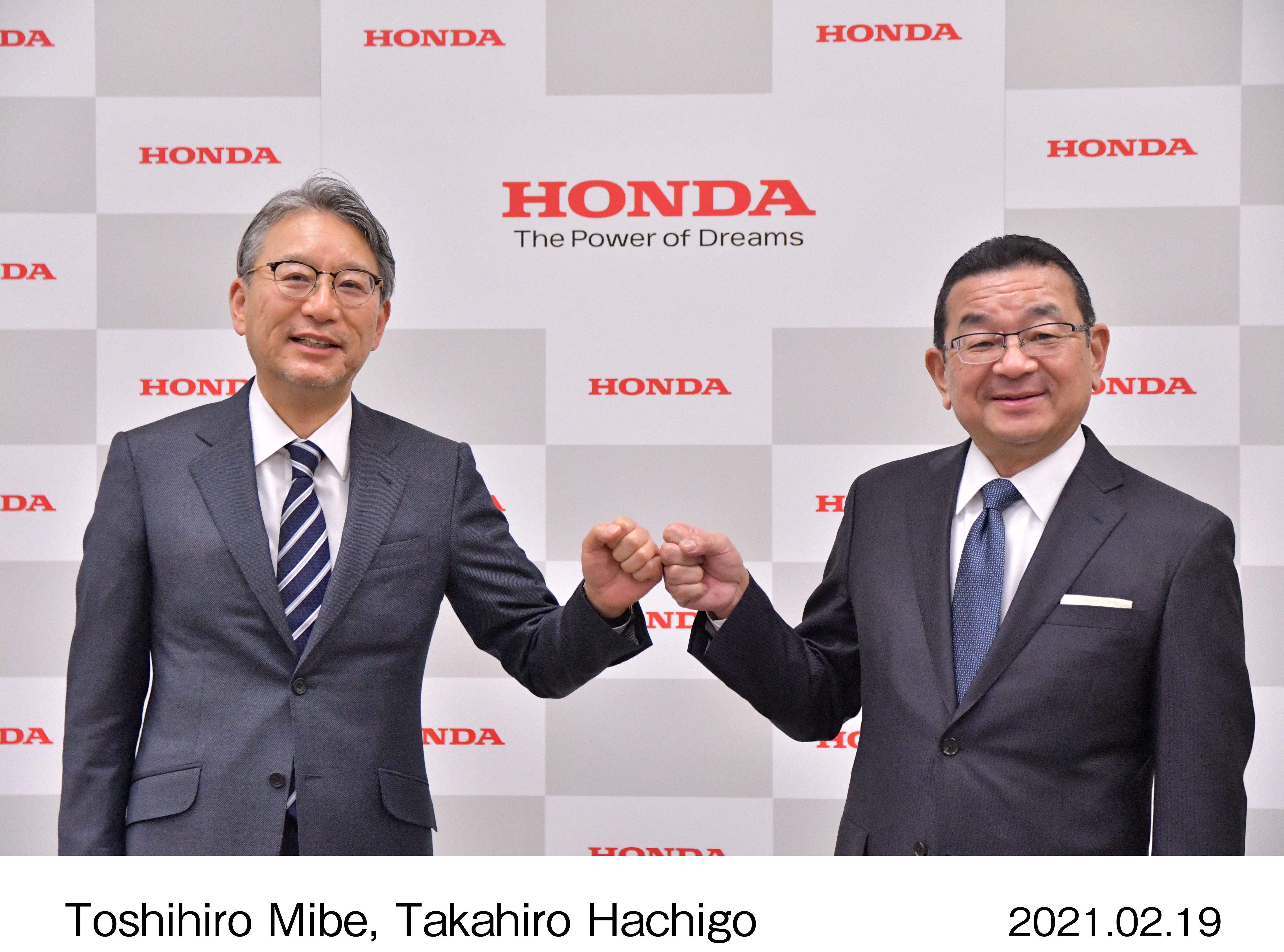 TOKYO, Japan, February 19, 2021 --- Honda Motor Co., Ltd. held a press conference at 5:00 pm today (Japan time) at its global head office in Aoyama in Tokyo, Japan, attended by Takahiro Hachigo, the current President and Representative Director, and Toshihiro Mibe, the current Senior Managing Director, who will become the next President and Representative Director effective April 1, 2021. Following is a summary of formal remarks made by Messrs. Hachigo and Mibe.