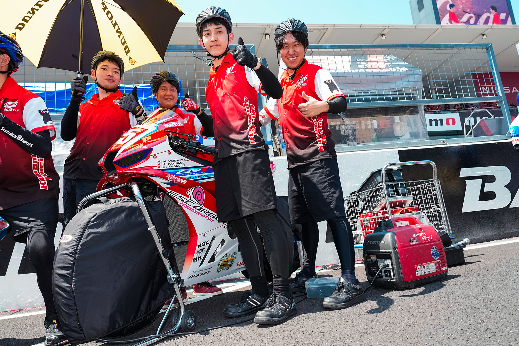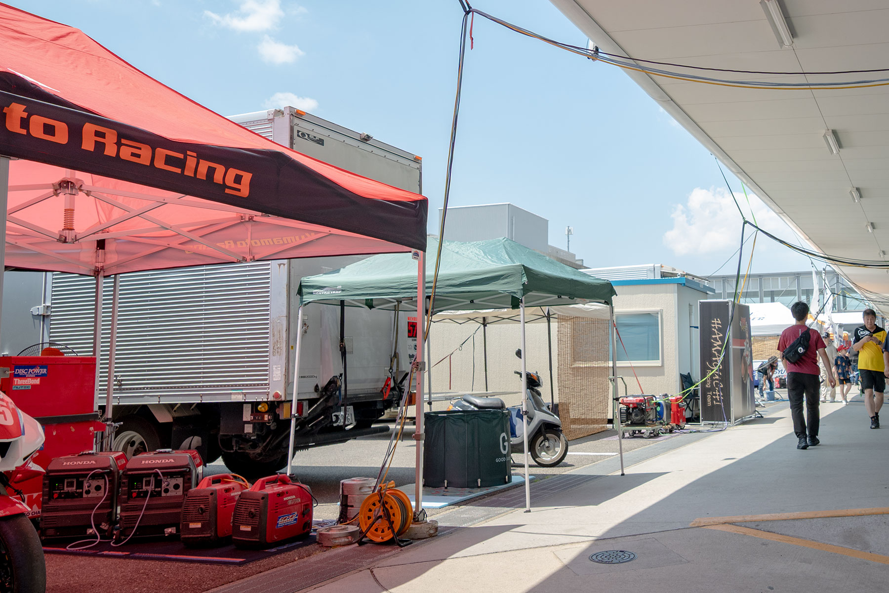 Suzuka Circuit, where the Suzuka 8 Hours is held, has various facilities, including power sources for each pit box. However, capacity is limited. Teams competing in the EWC and factory teams run by manufacturers often pay the organizers for 200-or 400-volt power to their pit boxes. However, private teams looking to save costs typically use the standard 100-volt power outlets while relying on generators for additional power.