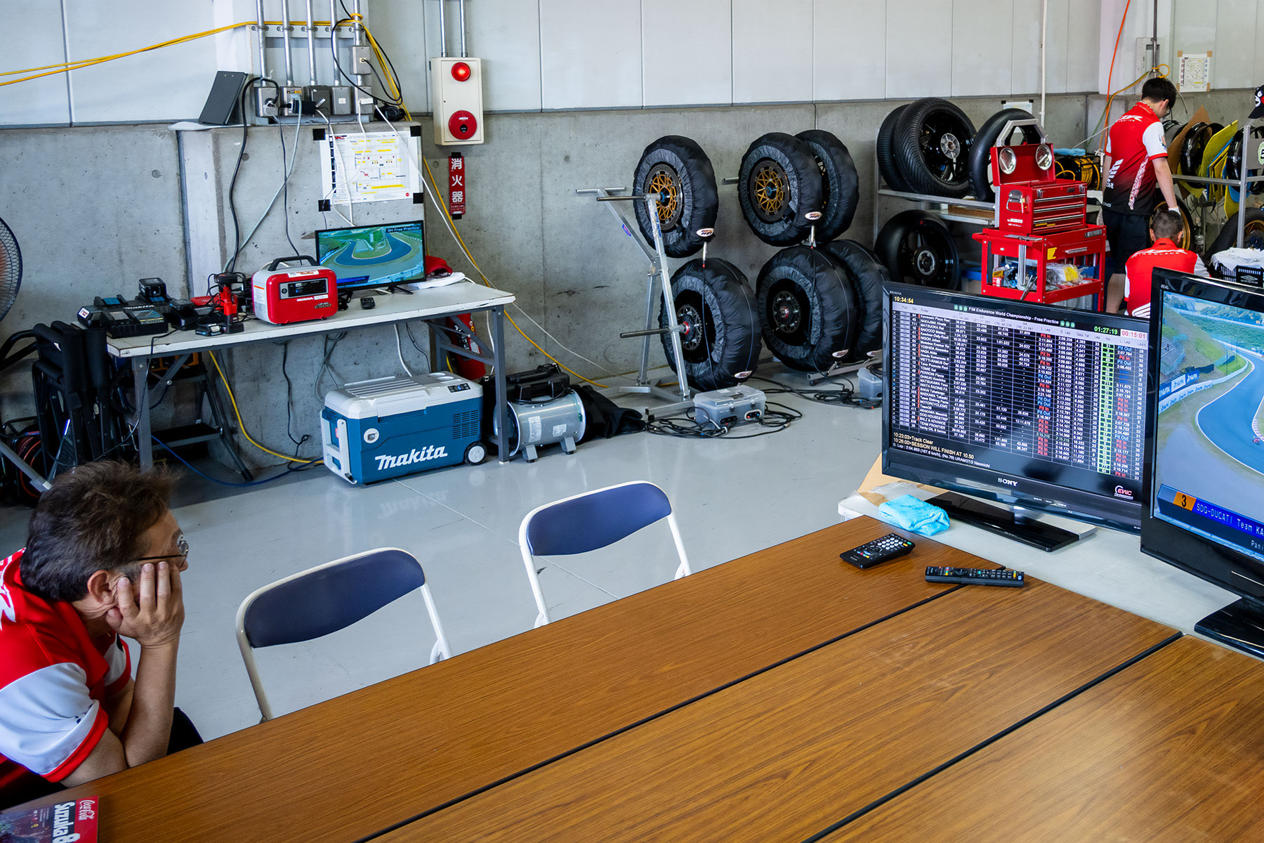 During the Suzuka 8 Hours, the pits are crowded with around 60 teams and nearly 1,000 staff coming and going, with countless electrical devices connected.