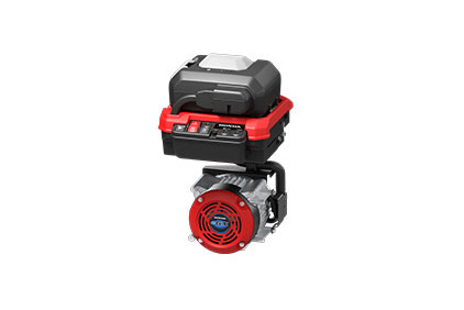 The newly developed a 50cc-class GX50 engine achieved maximum output of 2 horsepower. This engine features the acclaimed 360° tiltable four-stroke engine, popular as a power source for handheld equipment like brush cutters. Despite its displacement of 47.9cc, it achieves maximum output of 2 horsepower. Through downsizing and weight reduction, it achieves a power-to-weight ratio comparable to that of a 2-stroke engine.