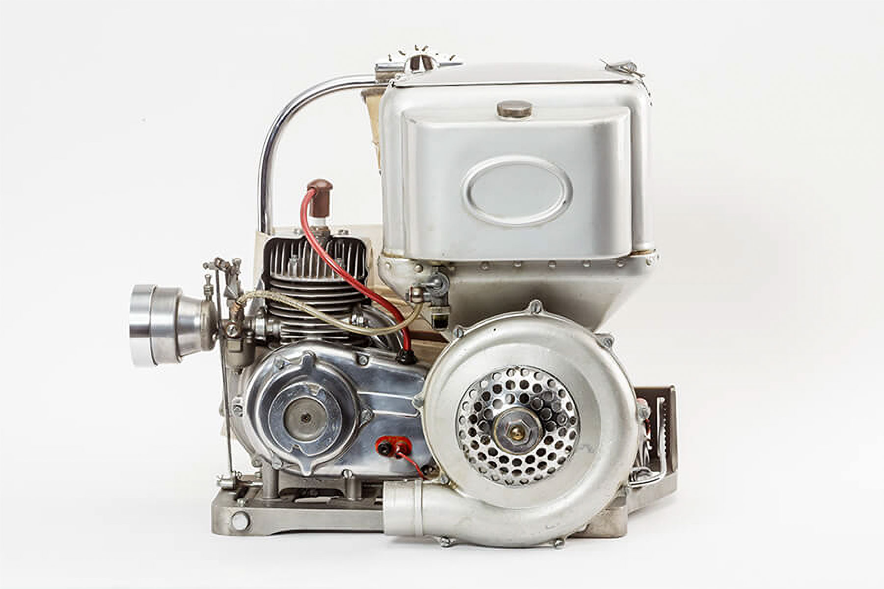 The Honda bicycle auxiliary engine later evolved into the A-Type engine, which launched in November 1947. This was further evolved into the Cub F-Type, which could be mounted on the rear wheel to keep the rider’s clothing comparatively cleaner, and was released in 1952.