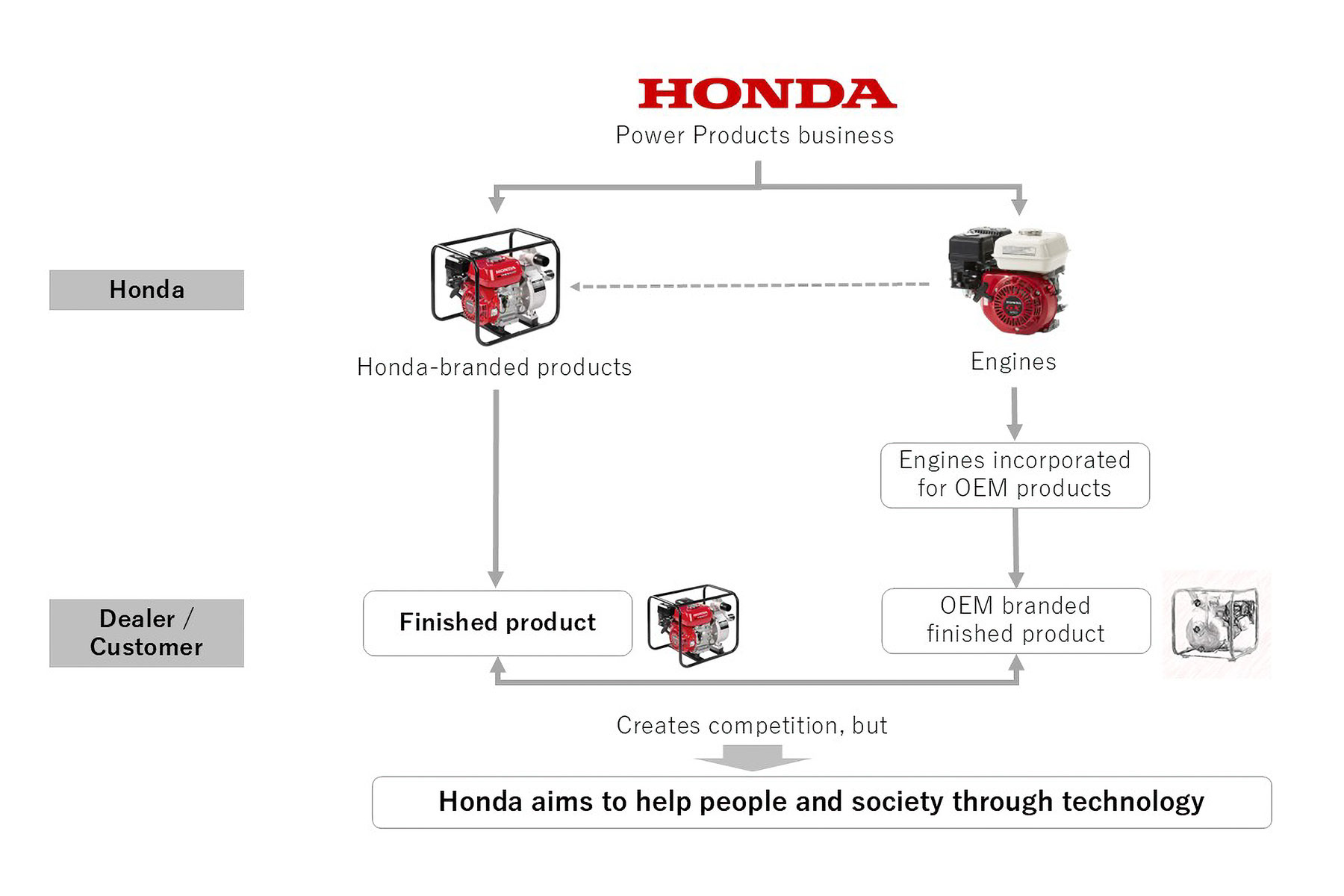 Honda’s power products business, which began in 1953 shortly after the end of World War II with the development of a general-purpose engine commissioned by an agricultural machinery manufacturer, expanded beyond the agricultural sector to supply general-purpose engines to manufacturers in a wide range of industries, including construction. Honda continued to play a significant role in various fields worldwide, with general-purpose engines at the core of its operations.