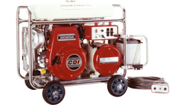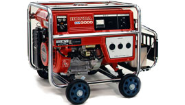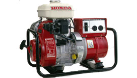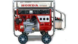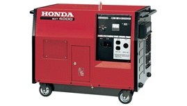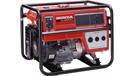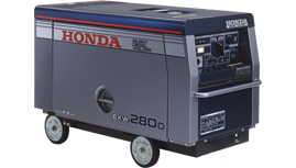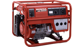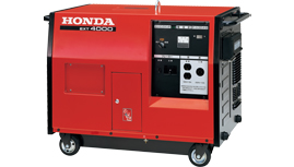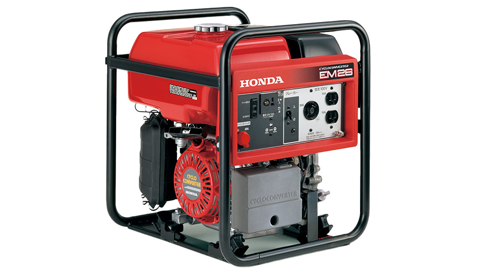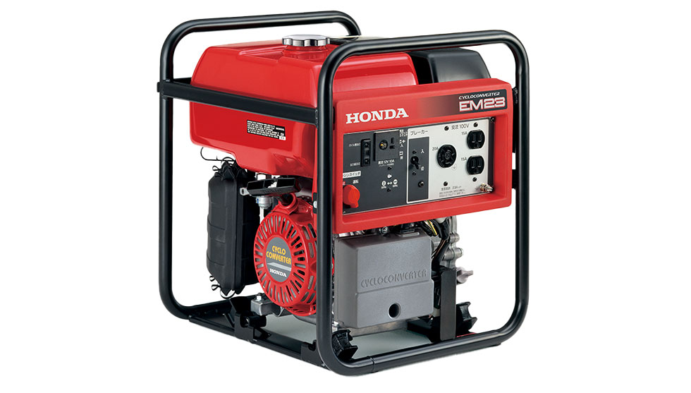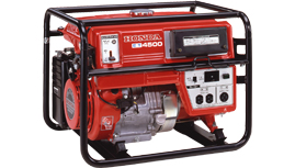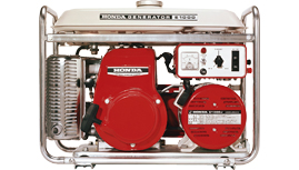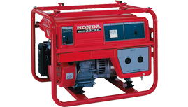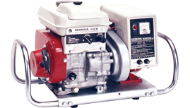 May: A standard generator with a large fuel tank for the Honda general-purpose engine (gasoline), which has a lightweight, compact design and high quietness, and is ideal for various types of work such as piping and equipment that are used continuously for long periods of time, as well as mobile sales businesses.