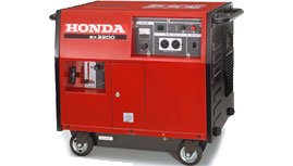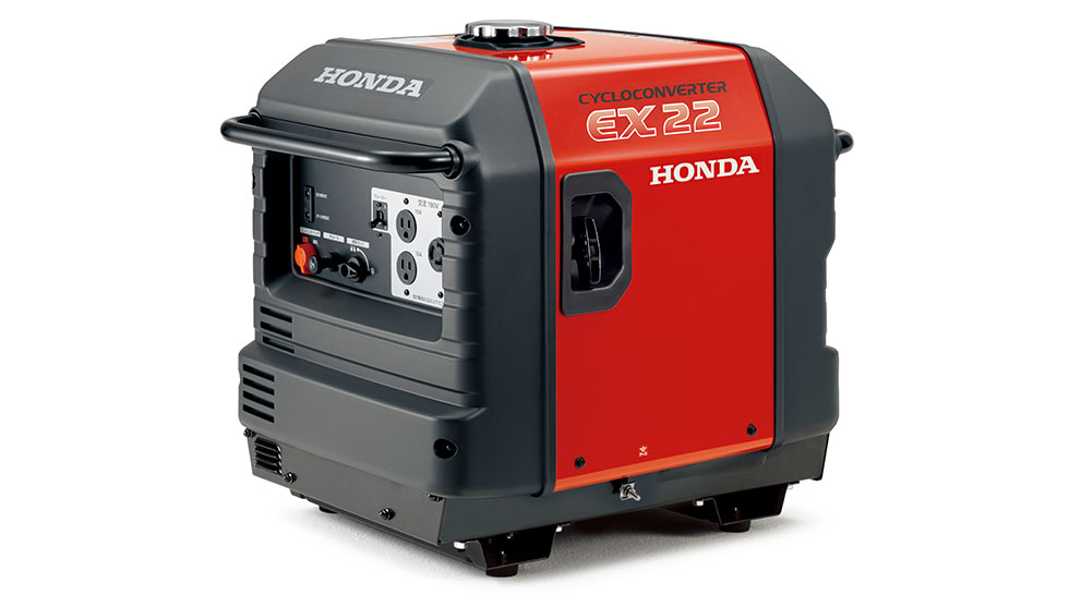 December: Powered by the compact, high-output Honda GX160 general-purpose 4-stroke OHV engine. In addition, by adopting a silent box that prevents the transmission of engine sound, the EX2200 achieves low noise operation (56 dB (A) 7 m (50 Hz)), making it a soundproof generator suitable for use in residential areas and at night.