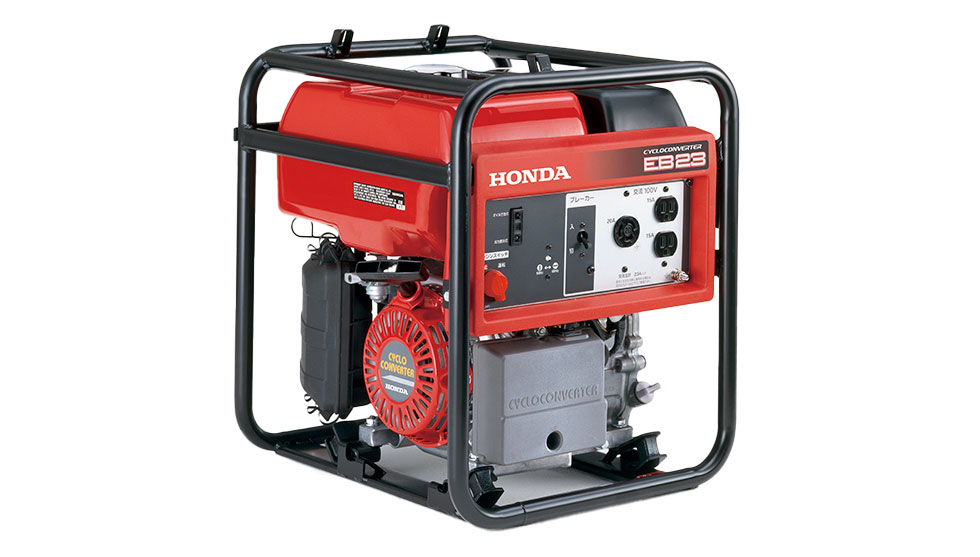 September: In addition to being powered by Honda's GX160 general-purpose 4-cycle OHV engine, which is quiet, lightweight, and compact, the EB2300X is also available in the R type, which uses a frame mechanism that allows construction equipment rental companies to store it in stacks. Three models / eight types of generators with a maximum output of 2.2 kVA (50 Hz)/2.5 kVA (60 Hz), EG2300X, EB2300X, and EM2300X, are ideal as a power source for various works such as construction and electrical work.