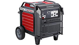 June: Adopting Honda’s proprietary sine wave inverter technology, this generator series delivers high output (4.5 kVA and 5.5 kVA) and is the world’s first*1 to enable simultaneous single-phase*2 100V and 200V output. Equipped with a dual-voltage sine wave inverter.