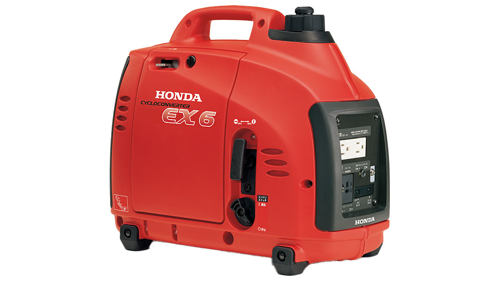 April: By incorporating a high-speed multi-pole alternator into the engine without a flywheel, the weight is approximately halved compared to previous generators with the same output, making the EX6 compact and lightweight, easily moved with one hand. In addition, the EX6 is equipped with a microcomputer-controlled cycloconverter mechanism to achieve a stable power supply, and Honda's unique double soundproof lightweight frame structure complies with strict European noise regulations (EN).