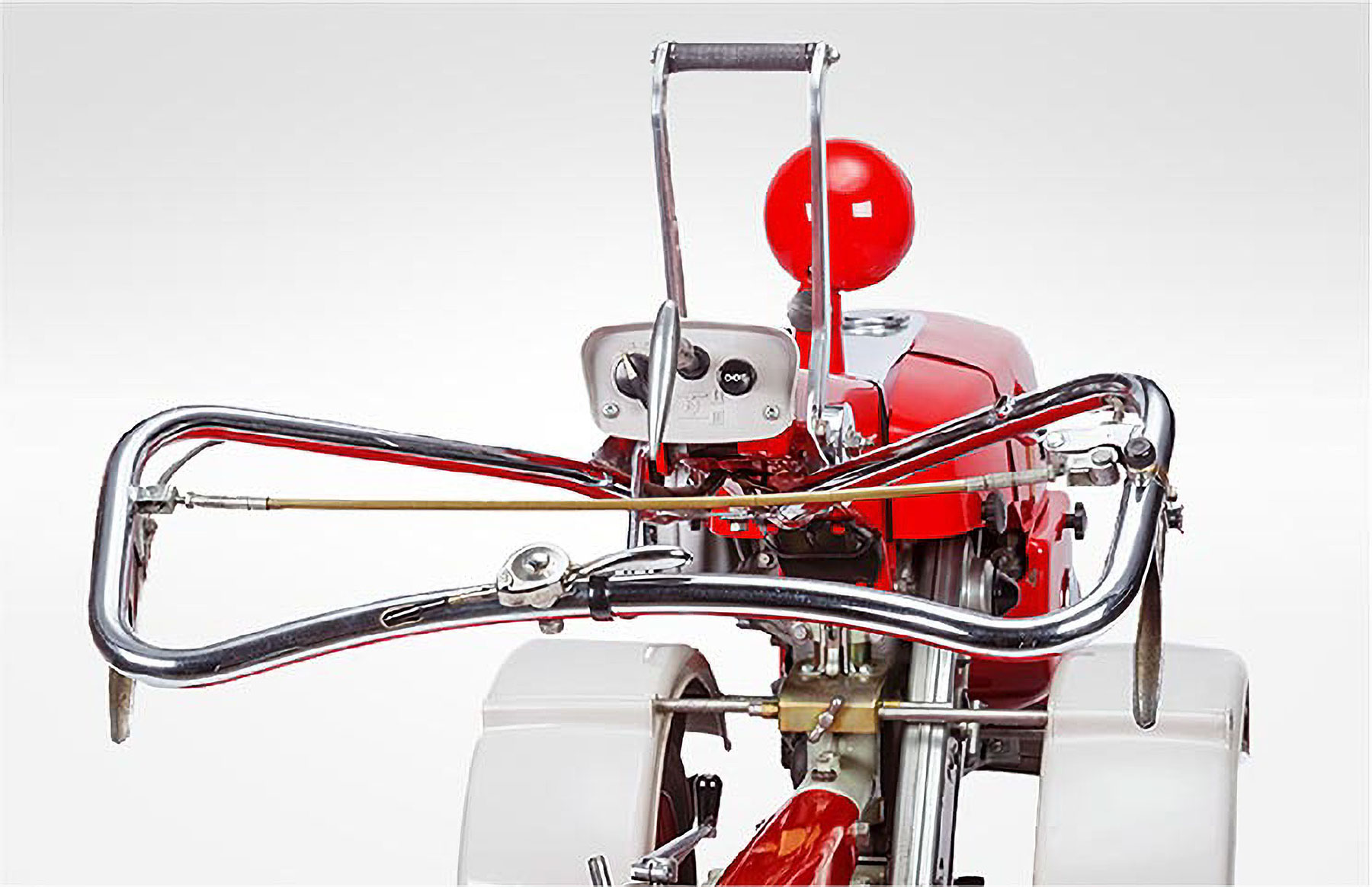 Additionally, the handlebar was mounted on dampers. This minimized engine vibration transmitted to the operator’s hands, reducing fatigue during long work sessions. Moreover, while many tillers exposed their engines and moving parts, the F150 covered both with a protective shielding. This enhanced safety while also refreshing the image of tillers, which were often dark colors such as black, with its bright red, stylish body color. It was hailed as the “Honda whirlwind turning fields bright red” and changed the world of agricultural machinery.