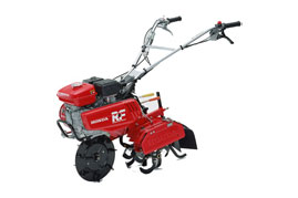 The ultra-compact “Honda Komame” (F200) tiller, small enough for easy operation even by women in home gardens, and the compact “Honda F400L” tiller featuring a side-clutch mechanism for effortless maneuvering in tight spaces.