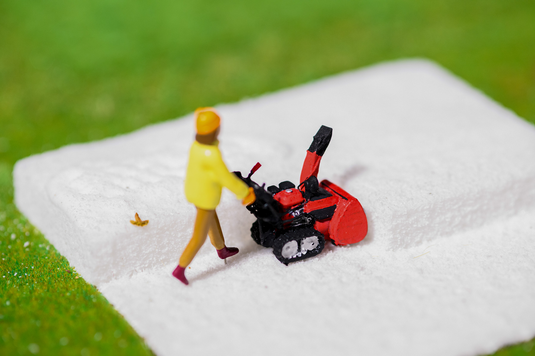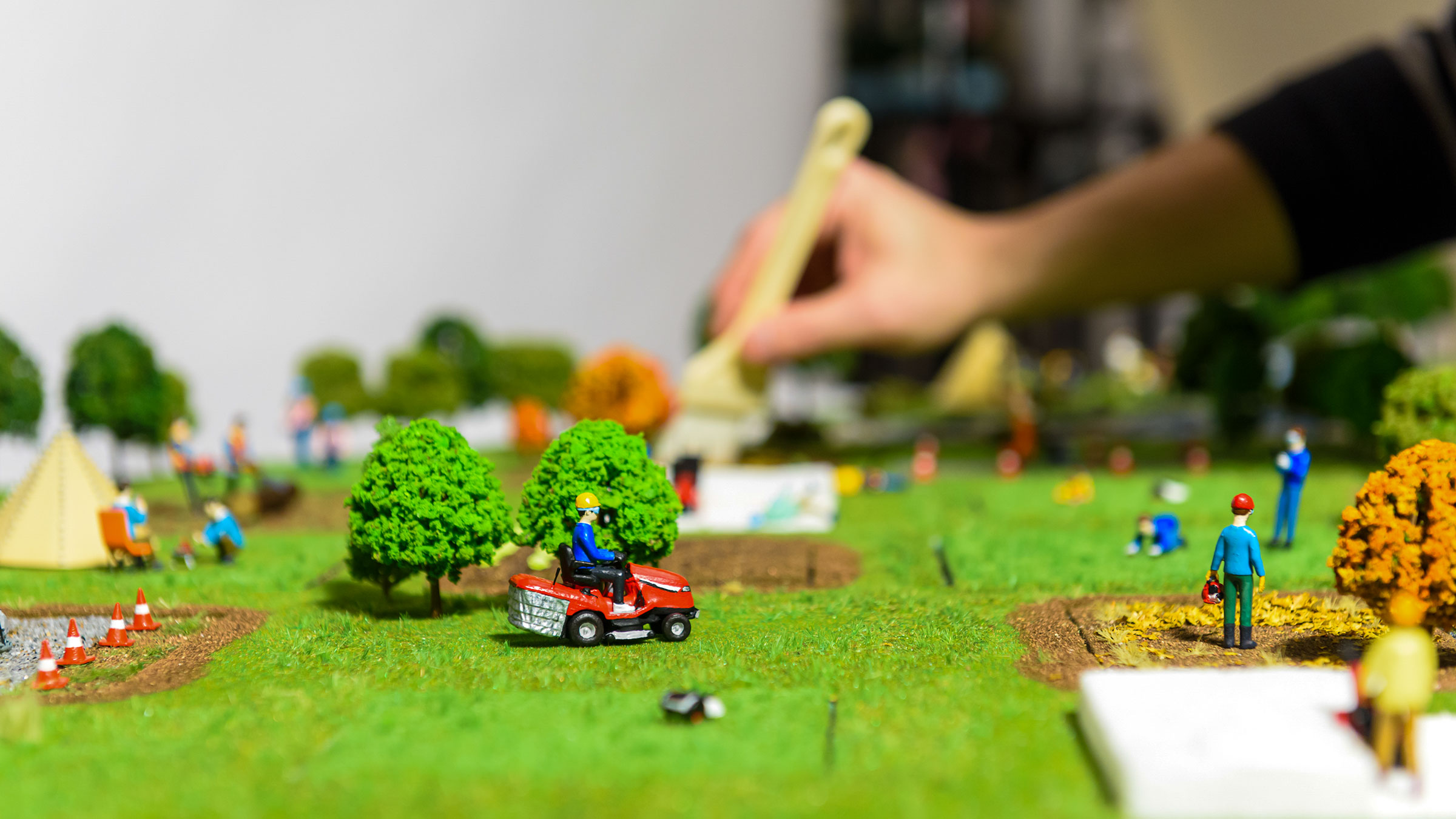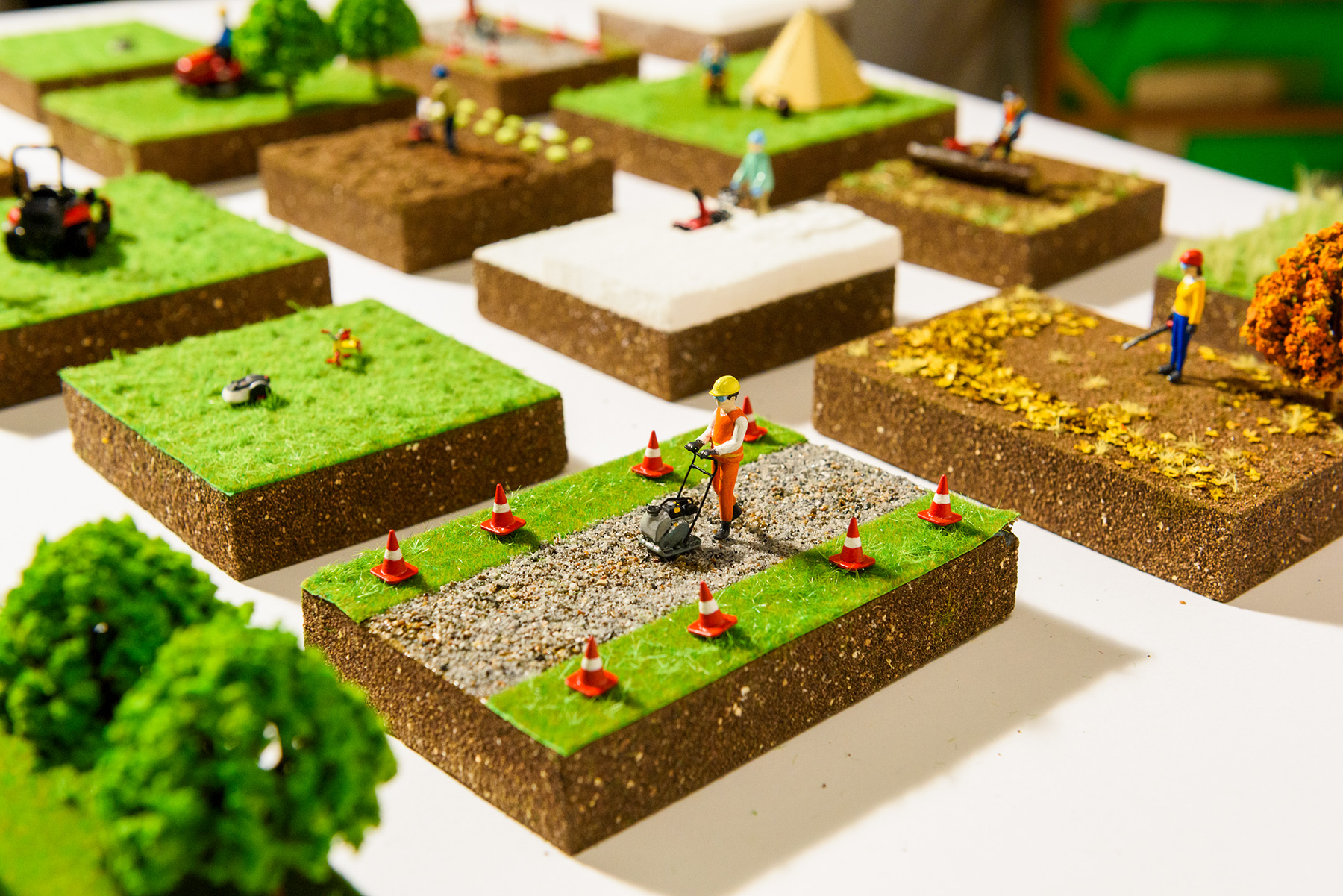 Within each miniature box garden, people mow grass, cultivate fields, and clear snow. By using power products, their efficiency improves. As these tools evolve through electrification and intelligence, tasks gradually move beyond human hands.