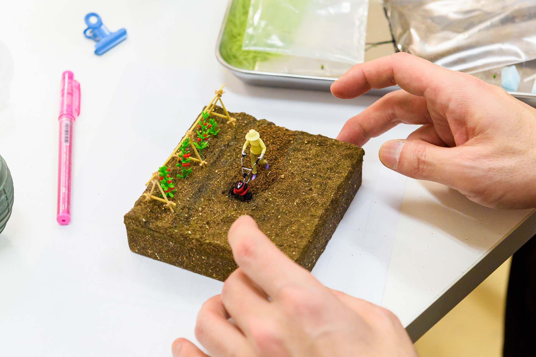 The miniatures were carefully crafted to strike a balance—neither too realistic nor overly toy-like—achieving a level of detail that feels authentic within the miniature world. The result avoids both fantasy exaggeration and confusion with real-life objects, instead delivering a grounded, carefully controlled sense of realism.