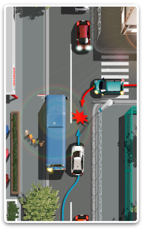SCENE 64City bus route in an urban areaYou are about to overtake a bus that has stopped at a bus stop.