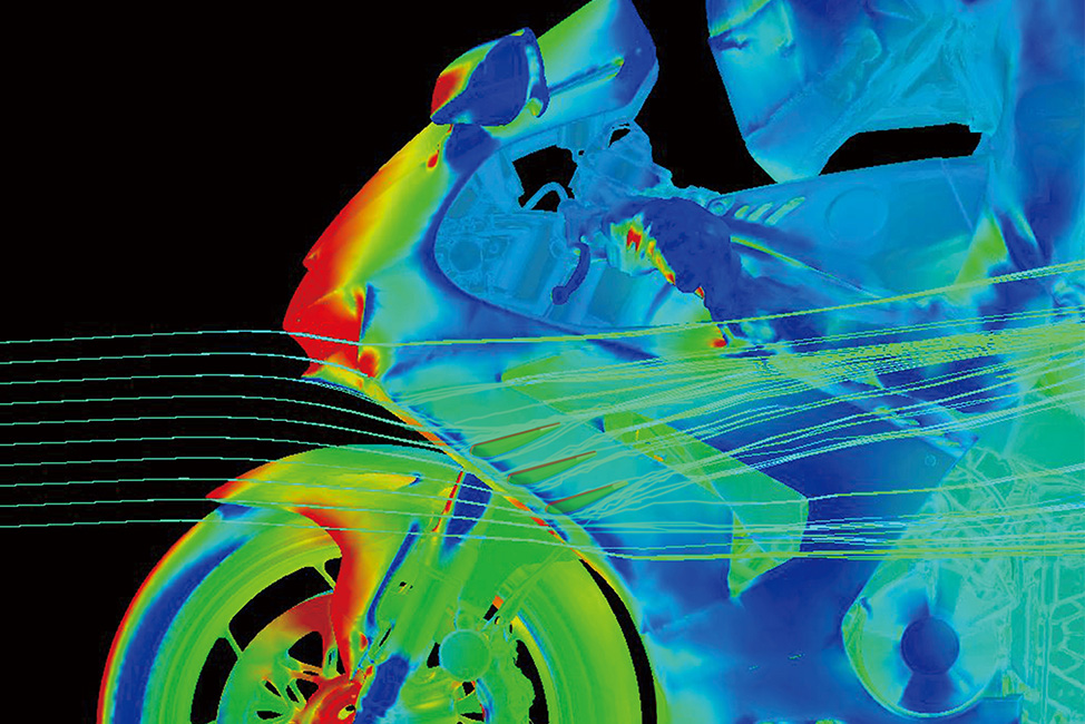 Yokokawa:That is right. Data apparently prove it.The force pushing down the front tire draws out a turning force to limit front lift during acceleration. When we see the total action from entering the corner to turning at a maximum lean angle and exiting, the machine can travel farther in distance in the same period of time.