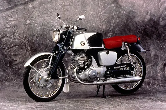 The 1955 Dream SA was the first model featuring the single-winged design. It passed all of its development goals in the first stages and easily won first place in the third Mt. Fuji Motorcycle Climbing Race.