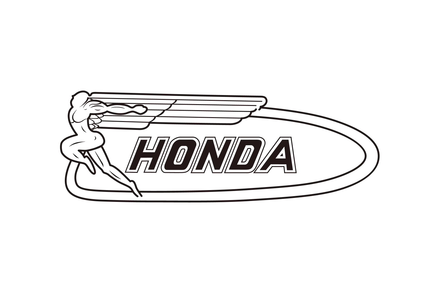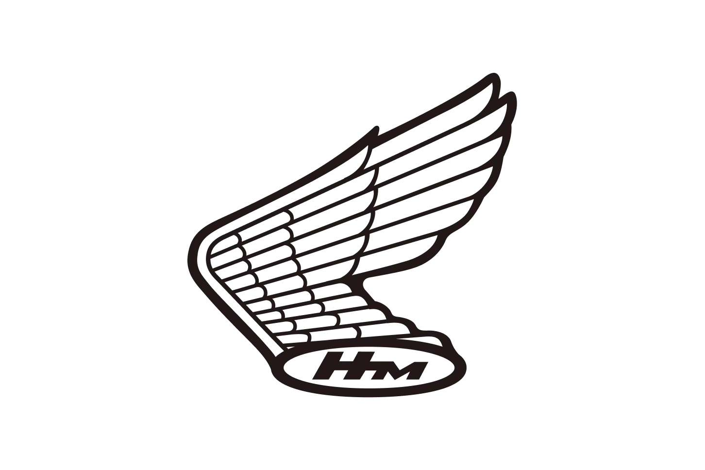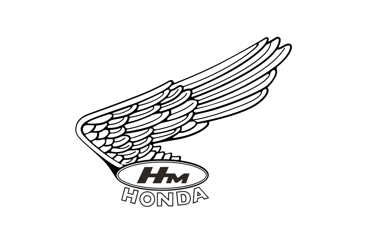 Diz-se que o motivo da asa foi inspirado nas asas da Nike da escultura grega de Samotrácia, bem como na águia, rainha das aves. Elas sobrevoaram o mundo como um símbolo da Honda, representando tanto a determinação inabalável da Honda em alcançar o sucesso quanto o forte movimento da motocicleta. Após o esgotamento da figura original em voo e, posteriormente, do desenho com duas asas bem abertas, o início do design atual começou a tomar forma. Estreou na Dream SA em 1955, sendo o primeiro logotipo a apresentar uma única asa. Para ilustrar o movimento dinâmico da asa, a direção da asa foi fixada para voar voltada para a frente em ambos os lados do tanque.
