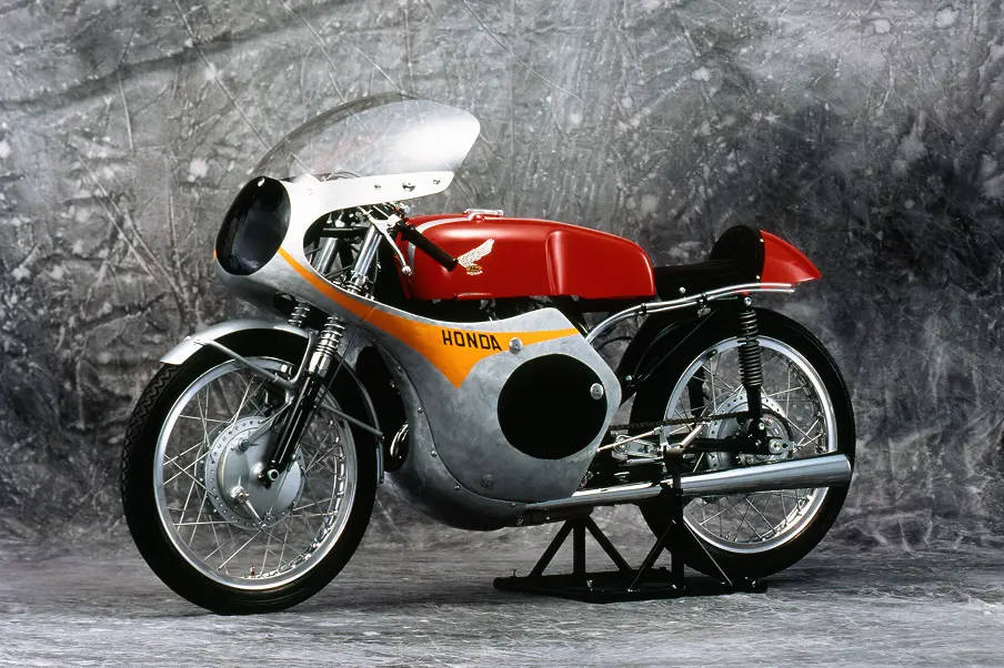 Em março de 1954, pouco menos de sete anos depois de a Honda ter começado a produzir seu motor auxiliar para bicicletas, Soichiro Honda anunciou que a empresa tentaria competir na mais prestigiada corrida de motocicletas do mundo: Isle of Man TT. Em 1959, eles participaram da corrida pela primeira vez, com a RC142 de 125cc. Apenas dois anos depois, Mike Hailwood venceu, numa RC143 com essa mesma marca da asa. E não só isso — a Honda foi campeã mundial de GP nas categorias de 125cc e 250cc.