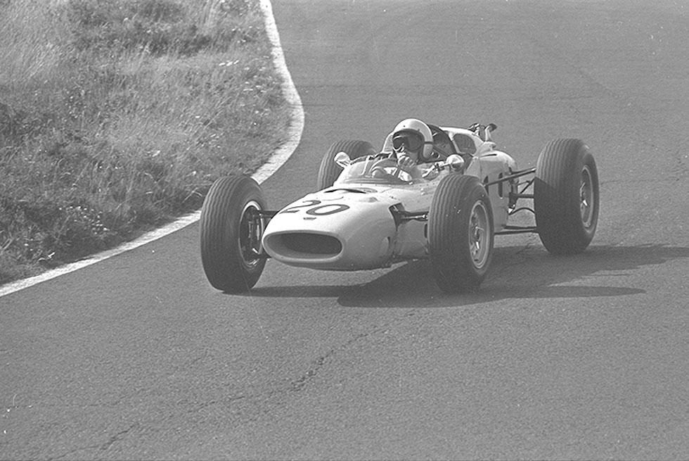 1964年8月2日、アジア初、日本初、そしてHonda初のF1マシンがF1グランプリにデビューした。ドイツ中西部のアイフェル山中に1927年に設けられた難コース、ニュルブルクリンクがその舞台となった。“ノルトシュライフェ”と呼ばれる1周22.8kmもあるアップダウンの多いこの山岳コースは現在でも“グリーンヘル”としてドライバーの聖地として君臨し、176ものタイトコーナーが続く狭いコース幅、4輪とも宙に浮くジャンピングスポットと名だたる難コースとして知られる。F1初挑戦の場として、これほど過酷な場所はない。しかし言い換えれば、処女作マシンの問題点を早期に発見し対処するのに、これ以上格好の場所もない。