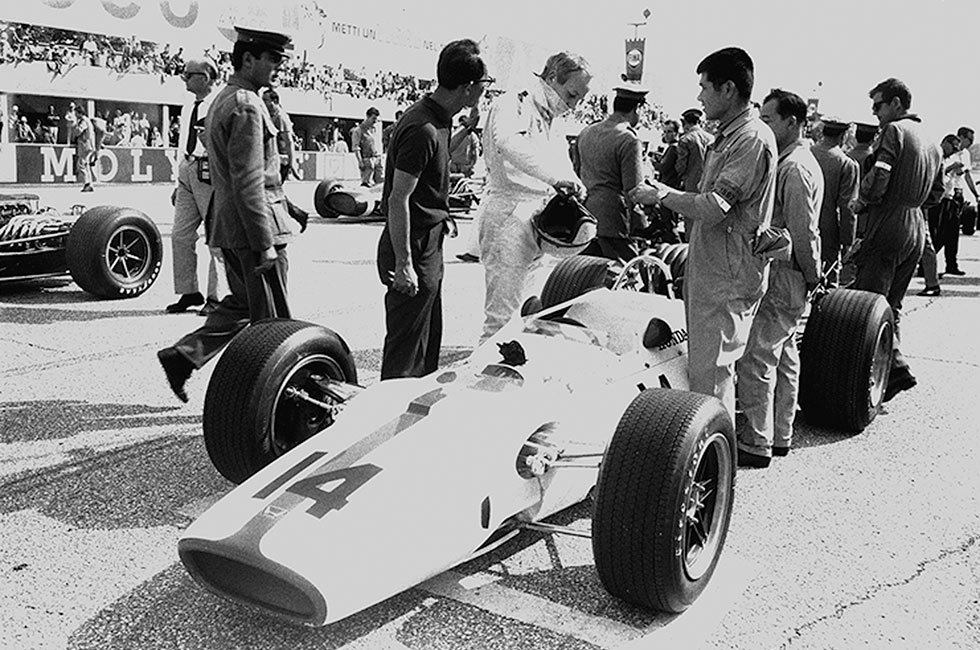 © HRCRA300は2年前のRA272改と同様に、秋開催の東京モーターショーに展示され、一躍脚光を浴びる。Hondaはこの年春に販売を開始した354cc強制空冷4ストローク2気筒の軽自動車N360の大ヒットにより、日本中に「エヌコロ」ブームを巻き起こし、着実に4輪量産メーカーへと成長しつつあった。