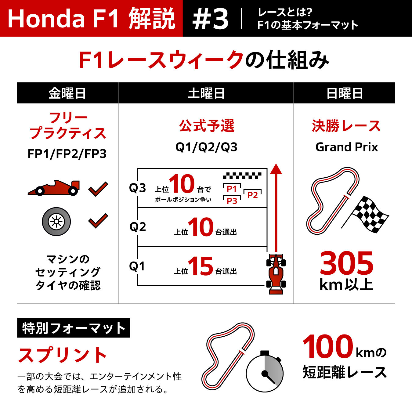 F1はフリープラクティス(F P)、公式予選(Q1―Q3)、決勝レースというフォーマットで行われます。グランプリウィークの金曜日から始まり、日曜日に決勝レースというのが基本的なスケジュールです。